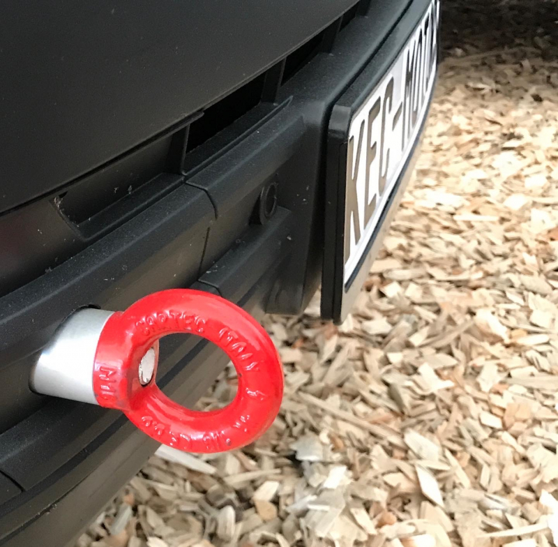 Die Ösen werden am Rahmen verschraubt und bieten somit die Möglichkeit das Fahrzeug sicher bergen zu können.