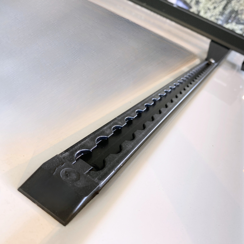 Die Schienen dienen als Befestigungsbasis für den MountRack Dachgepäckträger von KEC Motors auf den gängigen Schlafdächern.