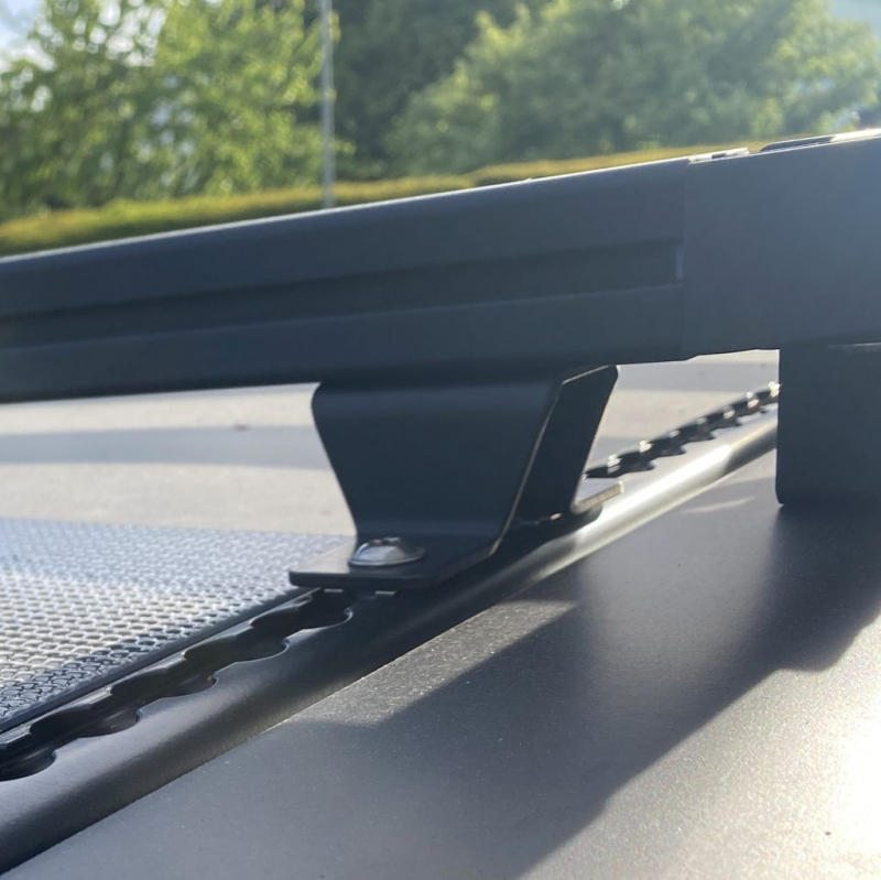 Die Halterung kann verwendet werden, um beispielsweise Dachträger für Gepäck oder Sportgeräte sowie Querstreben auf Airlineschienen zu montieren.